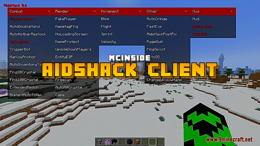 AidsHack Client Mod is built around a clear PvP use case: Crystal PvP and Anchor PvP. For players on Minecraft 1.19.2 who want combat automation alongside quicker totem and inventory handling, the listed features focus on crystal fighting, anchor usage, and survival-oriented support tools.