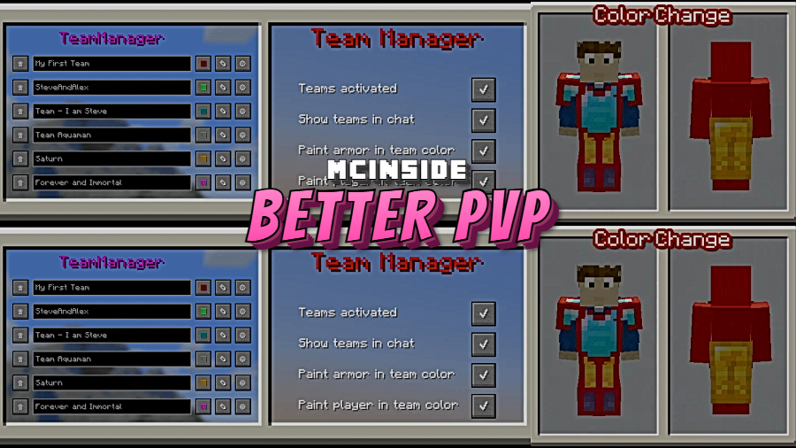 Fast fights and survival runs are easier to manage when the information you need stays visible and your key actions are quicker to trigger. Better PvP Mod focuses on that practical advantage by adding a customizable GUI with tools such as a minimap, potion and armour status displays, arrow and aiming info, quick-use keybinds, quick eat, better sprint, toggle sneak, and on-screen notifications for situations like low hunger, low HP, explosions, or incoming arrows.