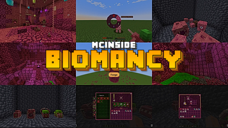 Biomancy Mod is a biopunk-inspired tech-magic mod that adds a fleshy, organic-themed progression experience for Minecraft Forge. It focuses on unsettling biotechnology style, mod integrations, and an add-on ecosystem across multiple supported Minecraft versions.