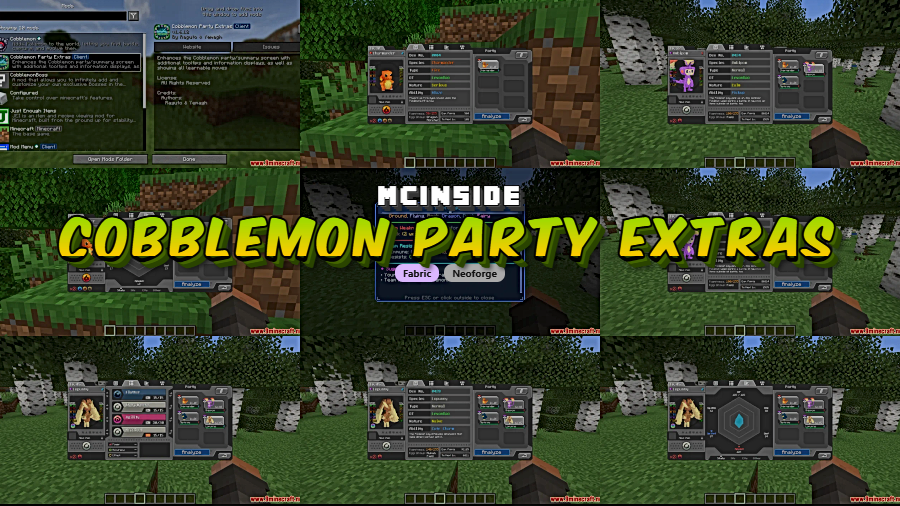 The mod enhances the default Cobblemon party and summary screens. Since it overlays tooltips and adds an analyzer view, it should be compatible with most Cobblemon addons, though conflicts with mods that heavily modify the same UI elements are possible.