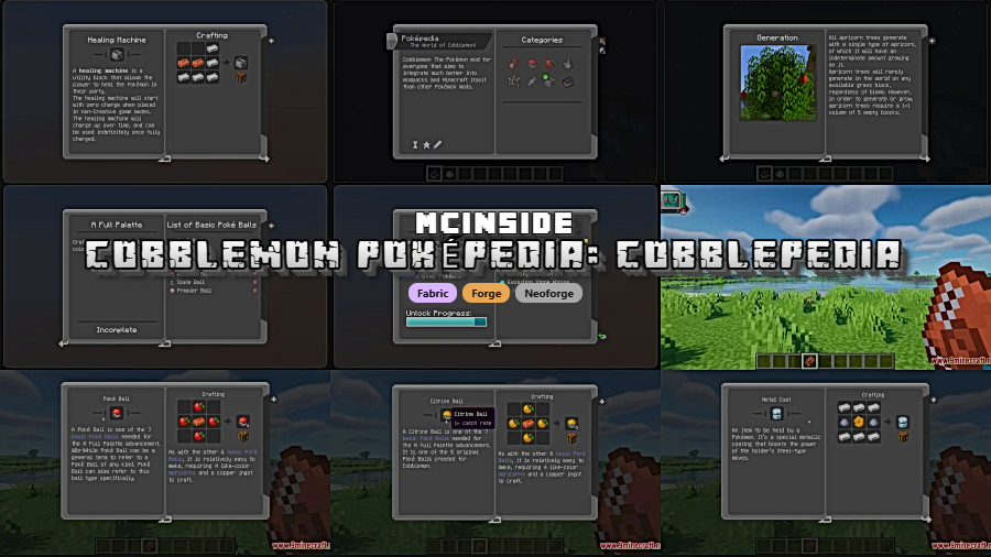 For Cobblemon players who want a quick reference without leaving their world, Cobblepedia Mod brings an in-game wiki book through Patchouli and pulls information from the official Cobblemon wiki. It also tracks Cobblemon-related advancements and uses custom UI textures designed to match Cobblemon’s aesthetic, making it a practical add-on for players who want progression and reference material in one place.