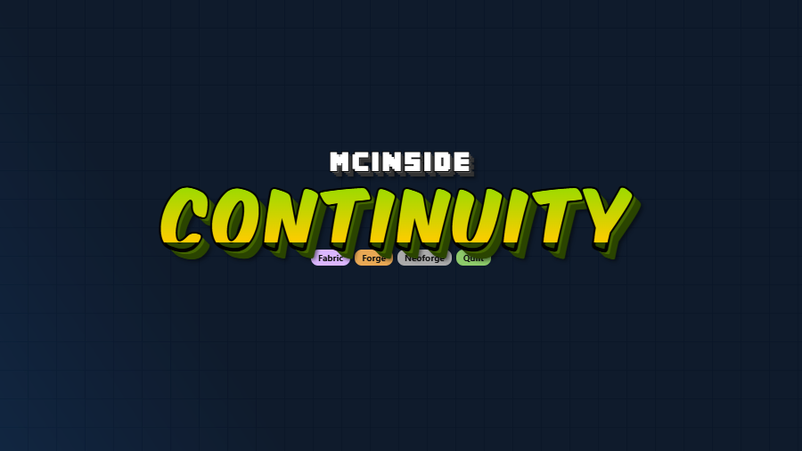Continuity is a connected textures mod that allows resource packs using OptiFine's connected textures, emissive textures, and custom block layers formats to work without OptiFine installed, available for Fabric, Forge, NeoForge, and Quilt mod loaders.