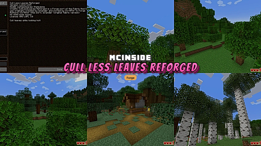 - Smart Culling Logic — Rather than removing leaves entirely, the mod intelligently skips rendering calculations for blocks that are fully obscured, so trees still look full from the outside.