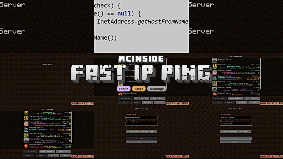 - Multi-Loader Support — Whether you use Fabric, Forge, or NeoForge, Fast IP Ping has you covered. This flexibility means you don't have to switch mod loaders just to get this quality-of-life fix, and it slots neatly into whatever modpack setup you already have.