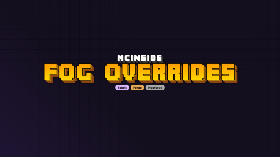 Fog Overrides Mod is a utility mod that lets you customize fog, sky color, water color, and visibility rules on a per-biome and per-dimension basis for Minecraft with Fabric Mod Loader, Forge, and NeoForge.