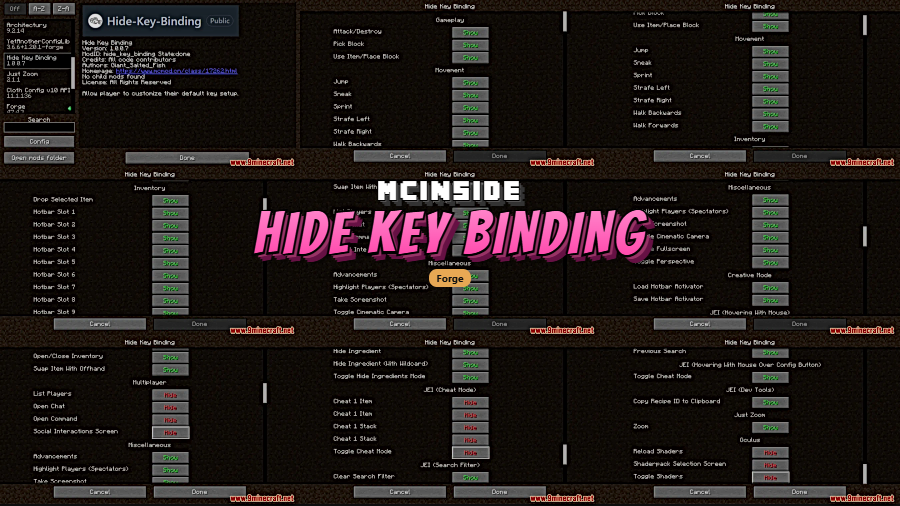 Ever installed a dozen mods only to find your controls screen overflowing with keybinds you'll never use? Hide Key Binding Mod solves that clutter by letting you hide any shortcut you don't need — and it actually disables them too, so no more accidental commands mid-game. With over 2.4 million downloads on Modrinth, this lightweight utility has become a go-to pick for modpack creators and players who like a clean setup.