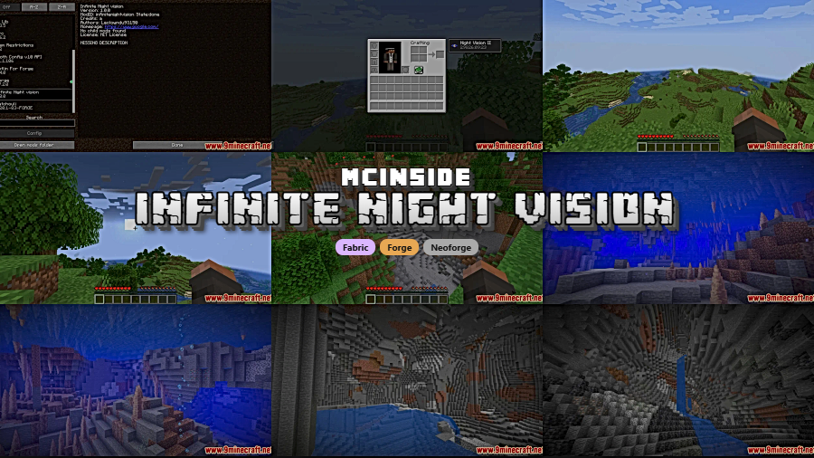 - Download the Infinite Night Vision Mod file matching your Minecraft version and loader from the links below.