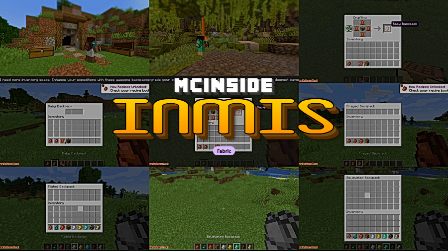 Inventory fills up fast once a survival world starts getting serious, and Inmis Mod is built around solving that with more storage space through backpacks. The available data describes a progression ladder of six backpack types, plus an Ender Pouch and a Baby Backpack, making it a focused Fabric option for players who want extra carrying room.