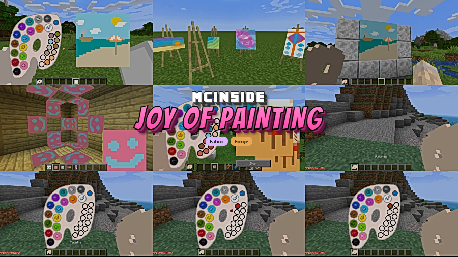 Ever wished you could replace those generic Minecraft paintings with your own creations? Joy of Painting Mod gives you exactly that — a crafting-based painting system where you mix colors on a real palette, pick your brush size, and paint custom artwork directly onto canvases that hang on walls just like vanilla paintings. With over 2.5 million downloads and support across Forge, Fabric, and NeoForge, this community favorite by xerca0 has been a go-to creative tool for builders since its original release.