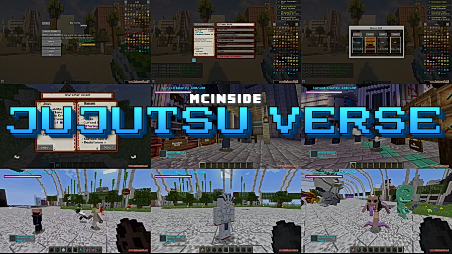 Bringing the cursed energy of Jujutsu Kaisen into Minecraft, Jujutsu Verse Mod introduces a full progression system where you level up by defeating enemies, completing quests, and landing Black Flash hits. Beyond the leveling, you get access to iconic abilities like Hollow Purple, domain expansion, new JJK characters, and a quest book packed with challenges — making this one of the more ambitious anime mods available for 1.20.1.