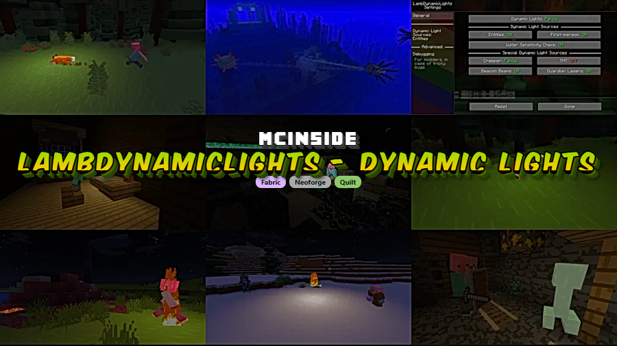 LambDynamicLights is a client-side lighting mod that adds dynamic lights to Minecraft, allowing held torches, dropped light-emitting items, and burning entities to cast realistic light in real time. It supports Fabric, NeoForge, and Quilt mod loaders across Minecraft versions from 1.20 through 26.1.