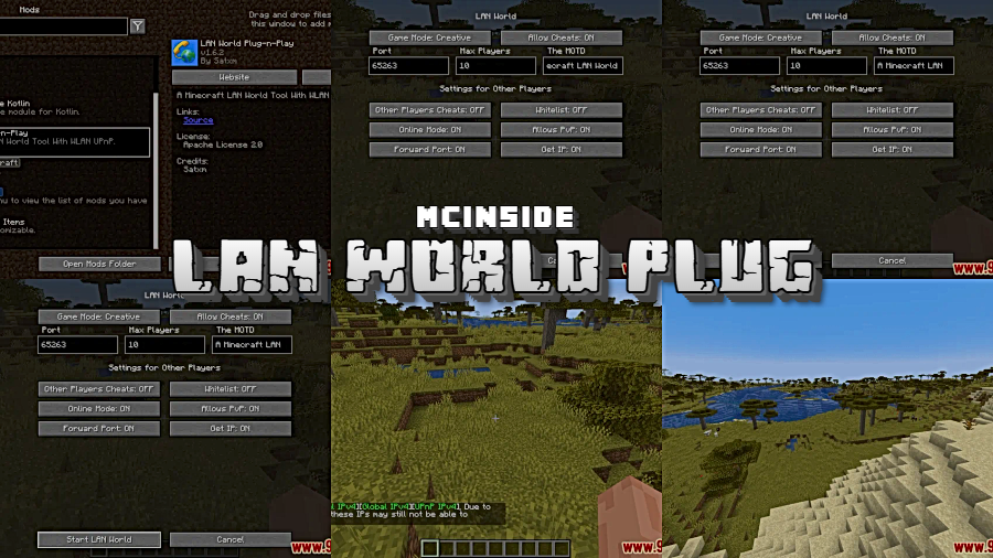 - Automatic Port Forwarding — The mod handles all network configuration automatically when you open a LAN world, removing the need to manually configure your router or firewall settings.