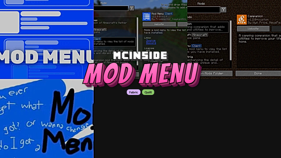 Mod Menu is a utility mod that adds a dedicated mod management screen to Minecraft, letting you view, search, and configure all your installed mods directly from the game's main menu. It is available for Fabric and Quilt mod loaders.