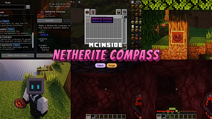 Mining for Ancient Debris in the Nether is one of Minecraft's most tedious grinds — strip-mining at Y=15 with beds or TNT, hoping to stumble across a few scattered blocks. Netherite Compass Mod changes that by adding a purpose-built compass that points directly toward the nearest Ancient Debris within a 3×3 chunk area. Instead of blindly digging tunnels, you get real-time directional feedback that makes Netherite hunting feel intentional and rewarding.