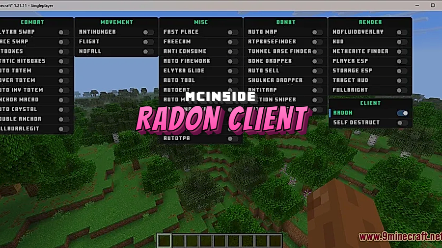 - Use the Fabric build of Radon Client Mod that matches Minecraft 1.21.11, 1.21.1, or 1.21.