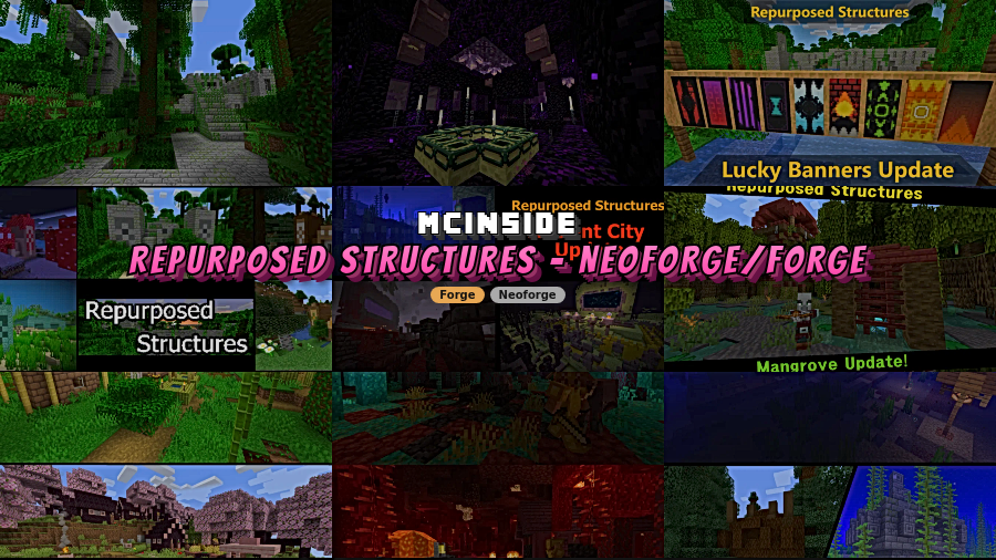 Repurposed Structures is a worldgen mod that adds new variants of vanilla structures and features for Minecraft Forge and NeoForge.
