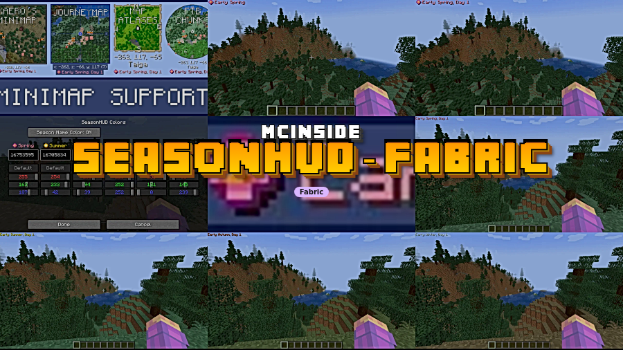 SeasonHud-Fabric is a client-side Fabric mod that displays the current season on the HUD or under supported minimaps for Minecraft with Fabric Loader.