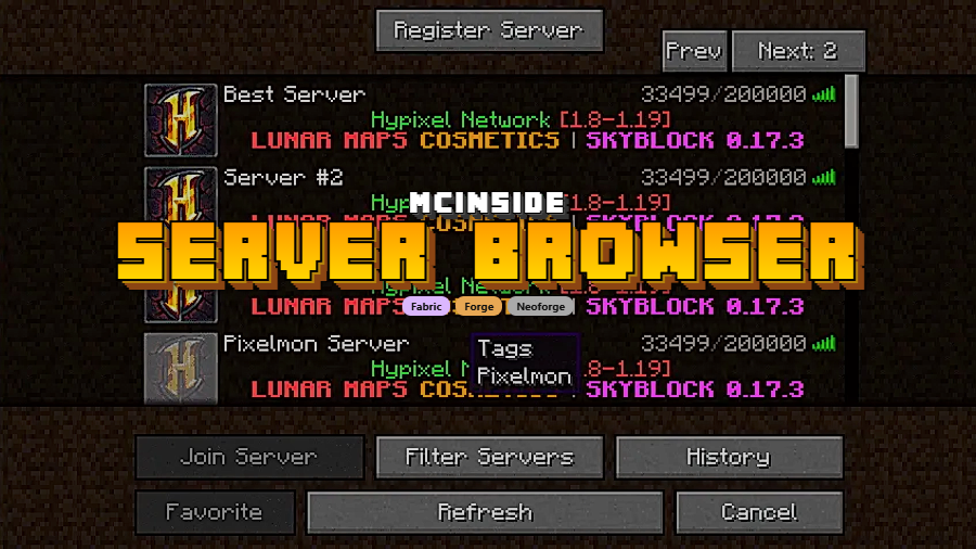 - Download the Server Browser Mod file that matches your loader and Minecraft version from the links below.