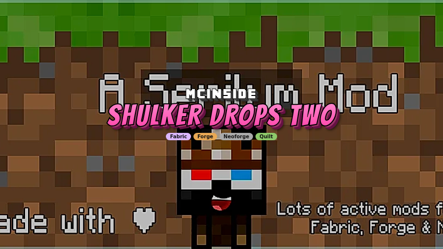 Shulker Drops Two is a gameplay mod for Minecraft on Fabric, Forge, NeoForge, and Quilt. The project page describes it as a allows Shulkers to drop two or more shells and ignore their default drop chance.
