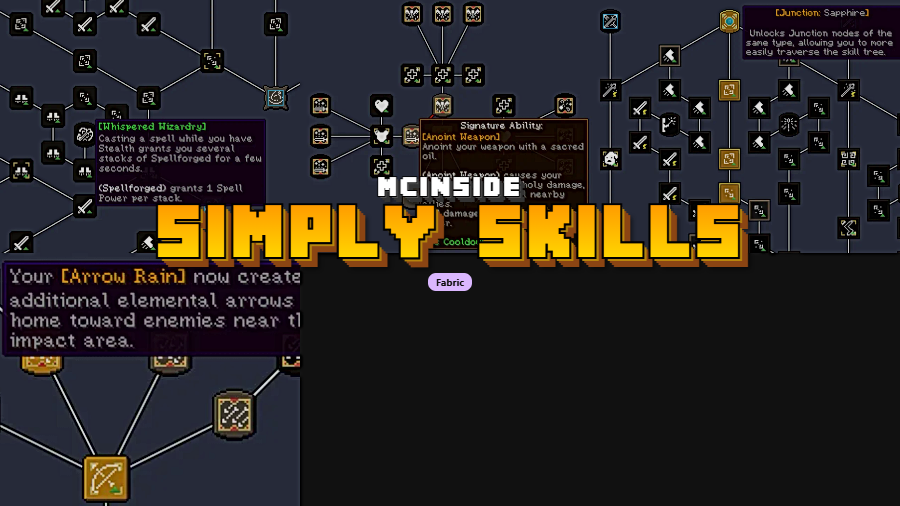 Simply Skills is a combat-focused skill tree mod that adds class-style progression, passive abilities, and specialisations to Minecraft for Fabric. It is designed to give players more late-game goals and more identity in battle through distinct build paths.