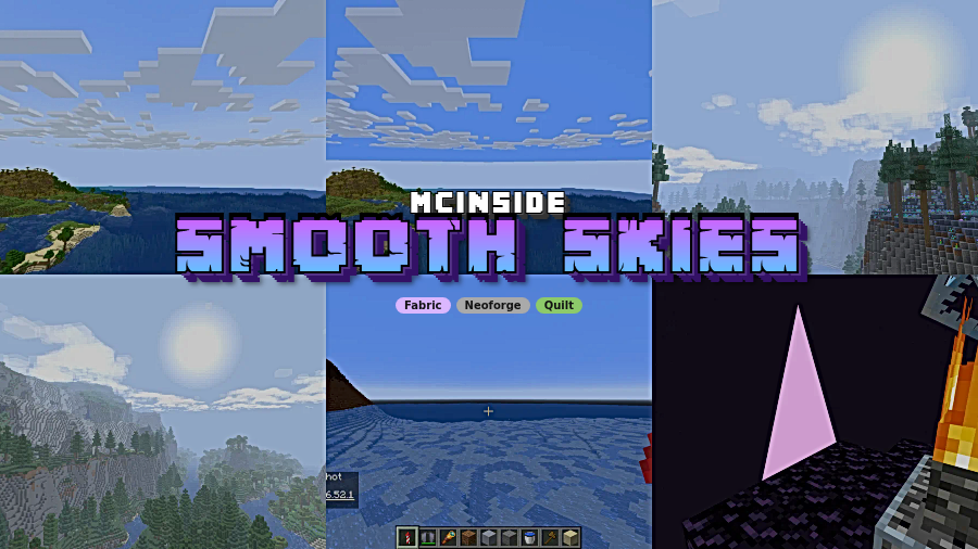 Smooth Skies Mod is a utility mod that smooths skybox and fog visuals for Minecraft on Fabric, NeoForge, and Quilt. It is designed to reduce harsh sky and fog issues at far render distances while adding several optional sky-related fixes.