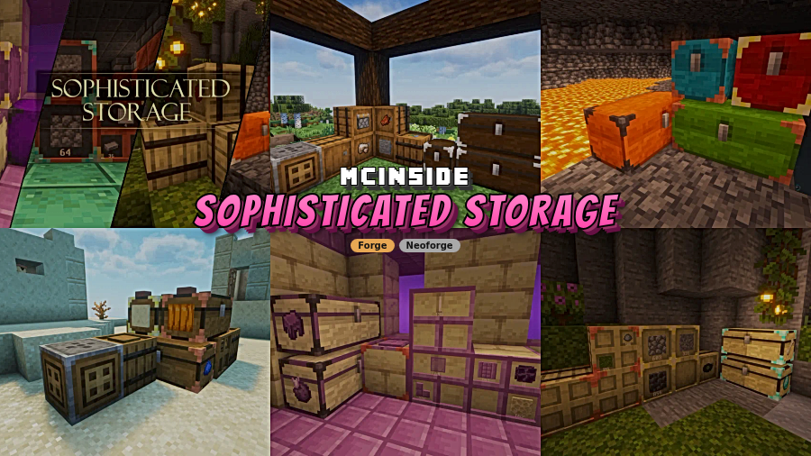 Sophisticated Storage Mod is a storage mod that adds upgradeable barrels, chests, shulker boxes, and decorative customization systems for Minecraft Forge and NeoForge.