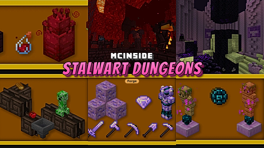 Stalwart Dungeons is a Forge adventure mod that adds custom dungeons, bosses, mobs, traps, weapons, and progression items for Minecraft Forge.