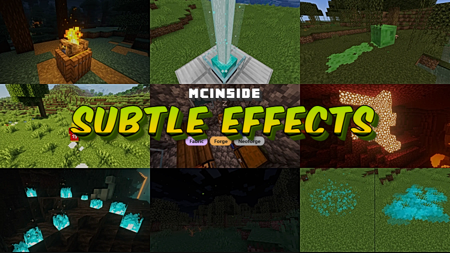 Subtle Effects is a client-side aesthetic mod that adds new particle effects and ambient sounds to Minecraft, available for Fabric, Forge, and NeoForge. It enhances visual immersion by introducing sparks from fire blocks, sleeping animations, slime trails, dust clouds, and low-health audio cues — all fully configurable.