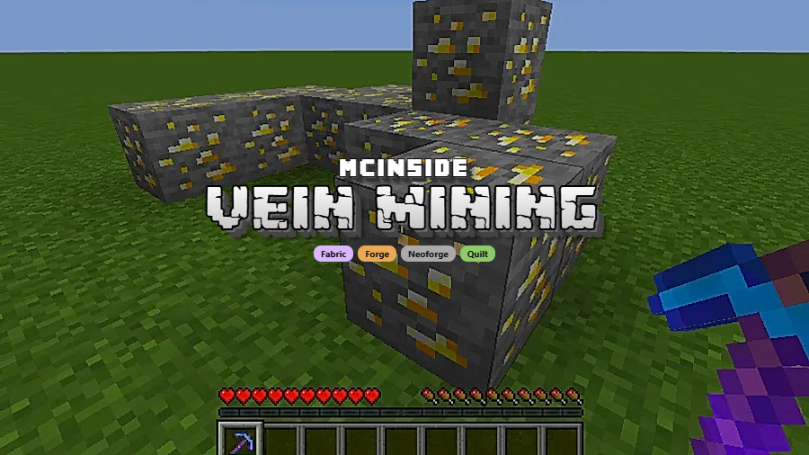 Vein Mining is a utility mod that adds a configurable Vein Mining enchantment, allowing enchanted tools to break entire clusters of matching connected blocks at once, available for Fabric, Forge, NeoForge, and Quilt mod loaders.