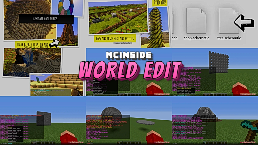 Building a massive castle block by block is satisfying — until you realize the walls are off by one tile and you need to tear down thousands of blocks. World Edit Mod eliminates that pain by giving you powerful terrain manipulation and construction tools that let you shape entire landscapes, duplicate structures, and undo mistakes in seconds. Whether you are carving out mountains with mathematical expressions or laying down an entire city district using building patterns, this mod transforms Minecraft into a true world-building sandbox.