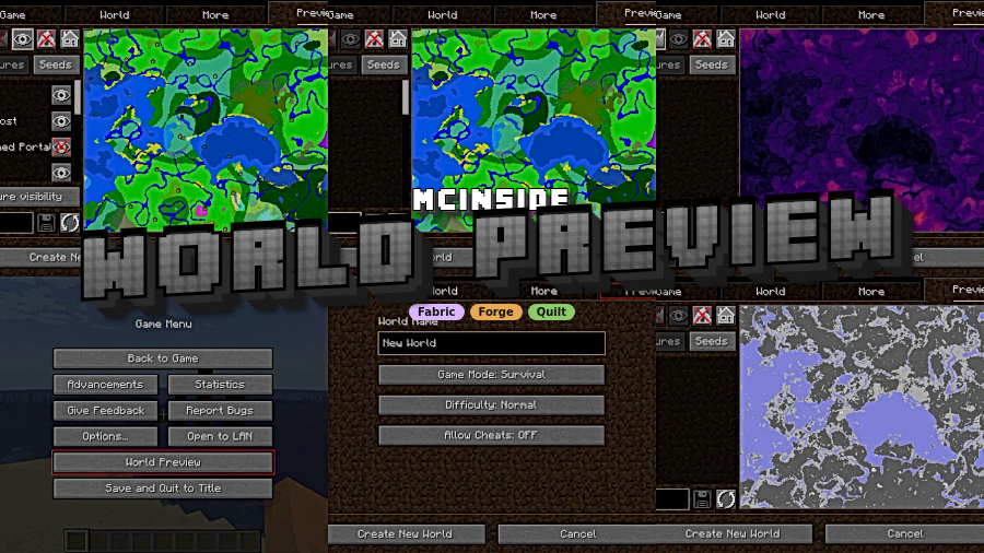 World Preview is a utility mod that lets you preview a map or seed in the new world screen for Minecraft on Fabric, Forge, and Quilt.