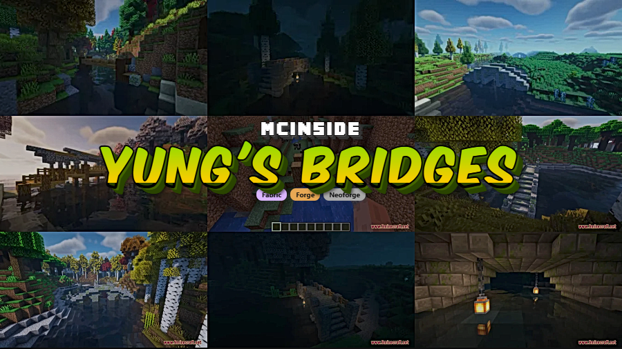 - Multi-Loader Support — Available on Fabric, Forge, and NeoForge, YUNG's Bridges fits into virtually any modding setup. Whether you're building a lightweight Fabric modpack or a massive Forge kitchen sink pack, you're covered.